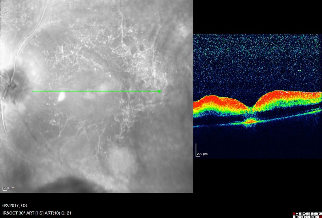 Μετά το οξύ στάδιο, το μάτι μπορεί να αντιδράσει στην έλλειψη οξυγόνου κάνοντας πρήξιμο (οίδημα) στην ωχρά κηλίδα. Σε αυτές τις περιπτώσεις, χρησιμοποιούμε το φάρμακο Eylea (ενέσεις στο μάτι).