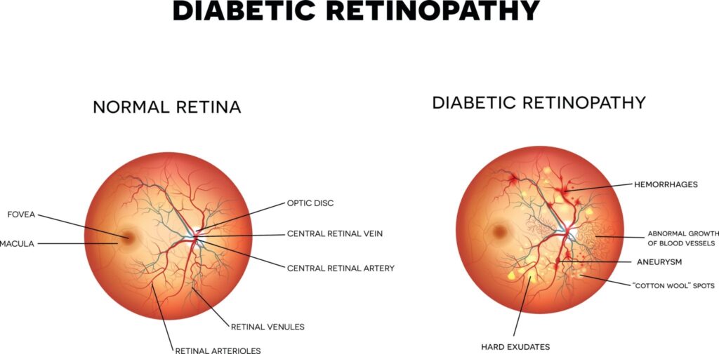 Οι βλάβες στα μάτια είναι αποτέλεσμα της μακροχρόνιας έκθεσης στο ζάχαρο. Επίσης, η απότομη βελτίωση του σακχάρου μερικές φορές μπορεί προσωρινά να επιδεινώσει την αμφιβληστροειδοπάθεια. Γι’ αυτό η συνεργασία διαβητολόγου και οφθαλμιάτρου είναι απαραίτητη.