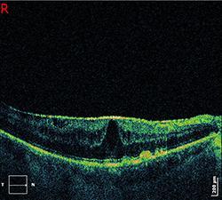 Το OCT προσφέρει υψηλής ανάλυσης διαστρωματικές εικόνες χωρίς επαφή με το μάτι, επιτρέποντας στον χειρουργό να μετρήσει το μέγεθος της μεμβράνης και το βαθμό του οιδήματος.